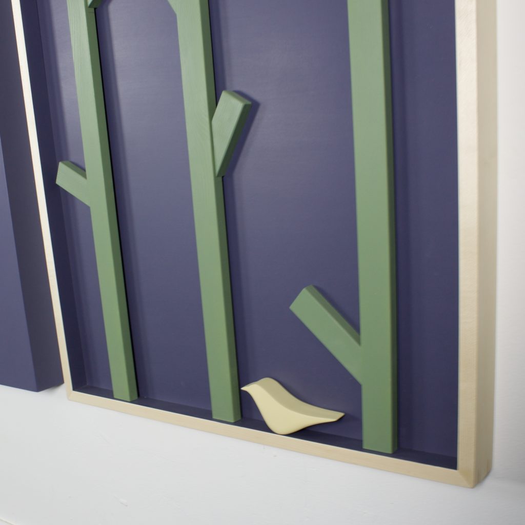 Finish: Osmo Top Oil on frames, bird, and yellow in middle panel.
