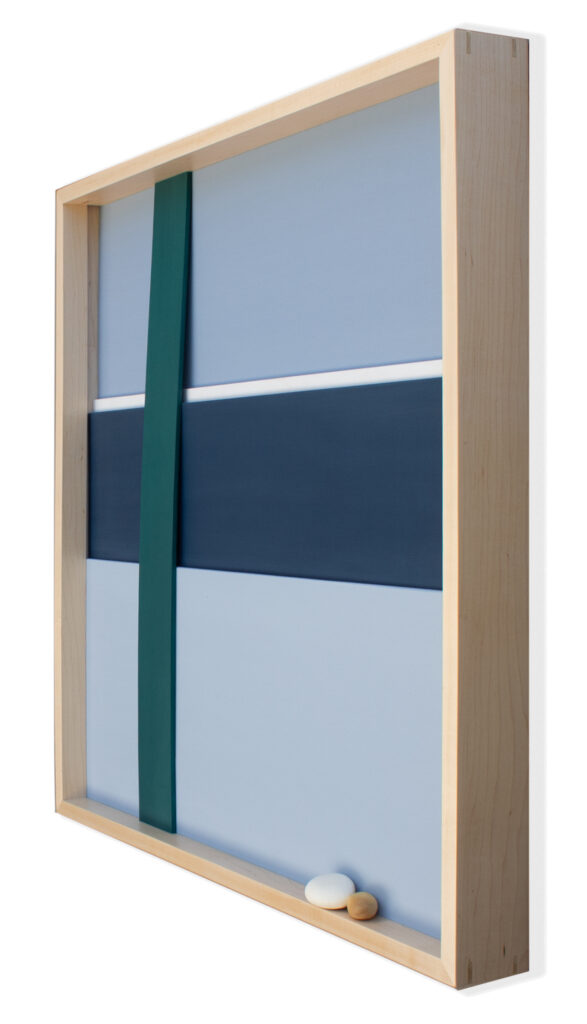 This piece is inspired by a scene in Nelson, Canada, where a single tree stood in front of water and distant mountains. The image stayed with me for its clarity and sense of stillness. The composition translates that memory into bands of color and a single vertical form that suggests the presence of the tree against the landscape.